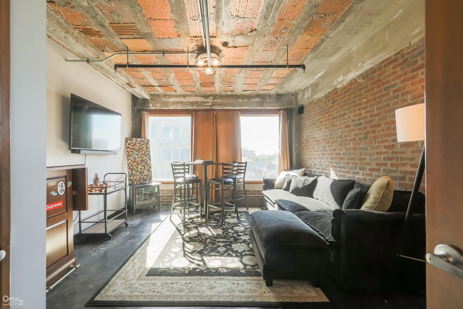 This stunning two-story, 2 Bedroom, 2 Bath industrial loft offers a sophisticated blend of raw and refined elements, from the towering floor-to-ceiling windows to the preserved exposed brick and high ceilings. Sunlight pours across the radiant concrete floors, illuminating the open-concept living space designed for both quiet evenings and lively entertaining. Enjoy modern comforts like a tankless hot water system, energy-efficient Anderson windows and New AC split systems. The Carleton has a large gated lot surrounding the building for owner parking. Upscale restaurant Bar Pigalle just an elevator ride away if you don't feel like cooking. Newly renovated park directly across street with large dog park and playground. 5 MIN WALK FROM LCA, FORD FIELD, COMERICA, FOX THEATRE.