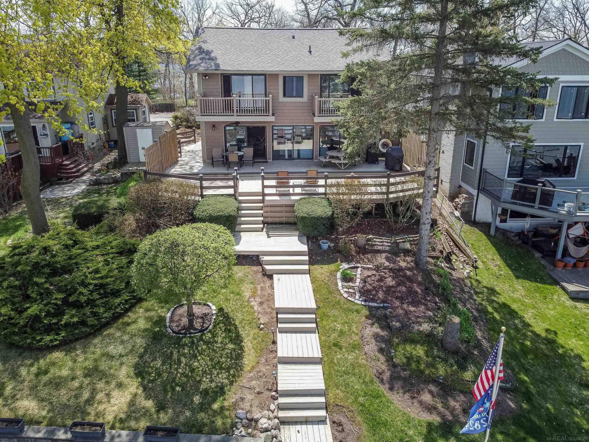 Enjoy panoramic views of Watkins Lake from this well-maintained home where this family has enjoyed 50+ years of making memories on the water. Take in the stunning sights from the all glass main floor living area or from the bedroom's balcony above. A secluded large deck offers an oasis for lounging in the sun or taking in the night sky. Take a walk down the beautifully landscaped multi-tiered deck to your own private dock with NO PUBLIC ACCESS. This is the perfect place to make a lifetime of memories with friends and family. Nothing beats LAKE LIFE!